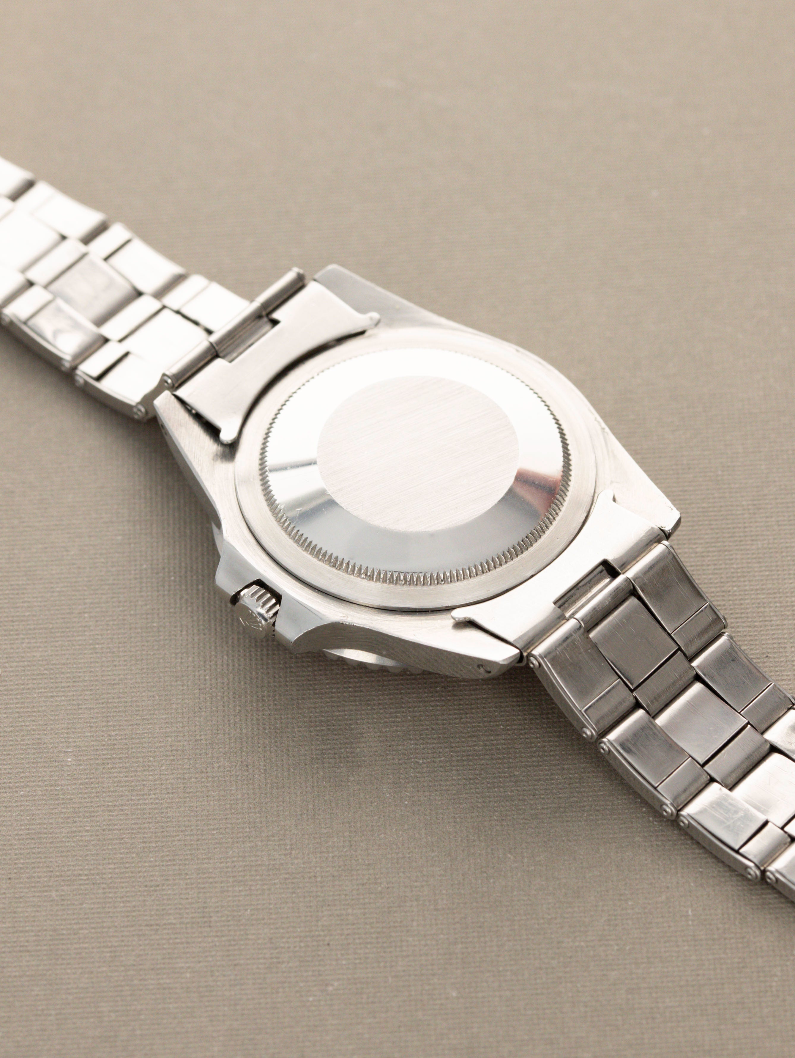 The example that we have here dates to circa 1969 and features an excellent, sharp refurbished case with gorgeous lug chamfers and shows only light signs of wear. The correct 'Long-E' matte black dial inside has a clean mate surface and gently patinated Tritium plots and the handset matches beautifully. The correct ' It comes fitted to a period correct C+I 'stretch-rivet' Oyster bracelet with a signed blade clasp.